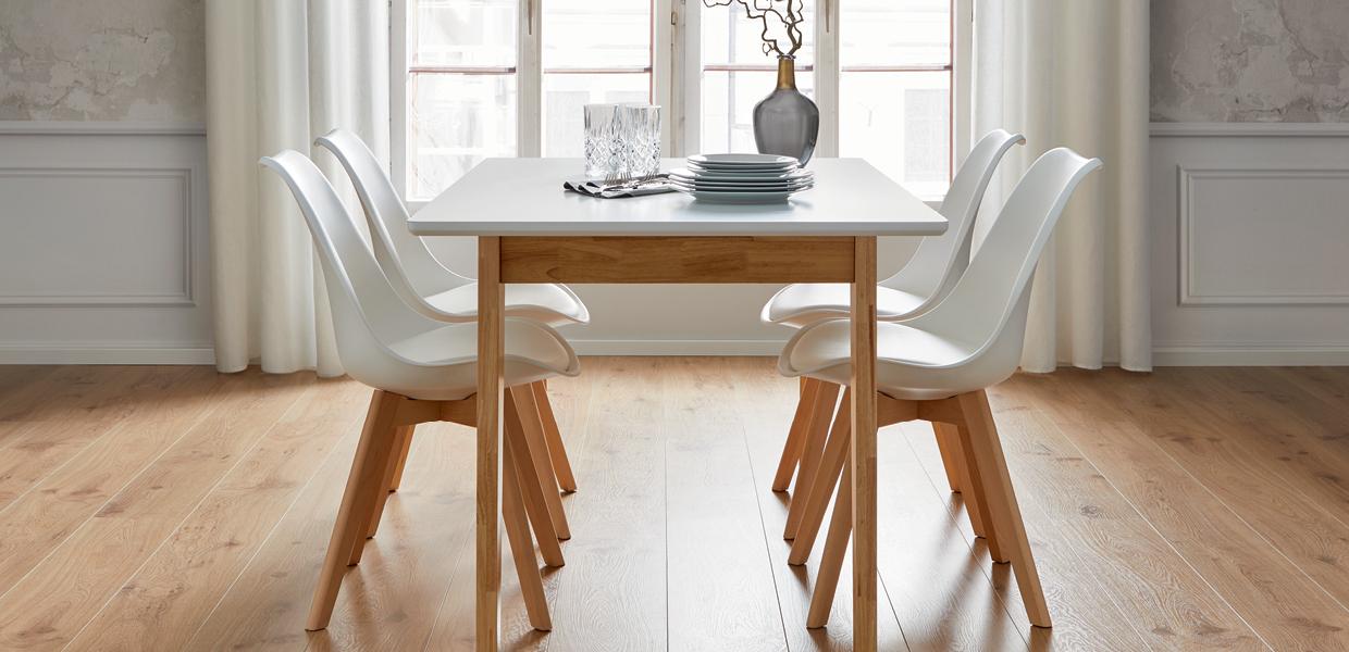 Składniki na idealny obiad skandynawski: grzyby, dziczyzna i igły jodłowe. Składniki do jadalni skandynawskiej: drewno, skóra i mnóstwo światła! W Skandynawii twierdzą, iż wszystko, co rośnie przed drzwiami, jest odpowiednie do przyrządzenia potraw, odnosi się to również do projektowania jadalni w stylu skandynawskim. Północ nie jest tak zimna, jak się spodziewano. Krzesła skandynawskie, stół i ławka zachwycą czystymi kształtami i liniami. Ten surowy wygląd uzupełnia subtelna kolorystyka, drewno rustykalne i naturalne materiały, dzięki czemu jest bardziej komfortowy. Podczas gdy w garnku odbywa się symbioza słodyczy, kwaśności i pikantności, w jadalni flirtują szorstkie i rustykalne materiały o delikatnych kształtach i pudrowych kolorach.