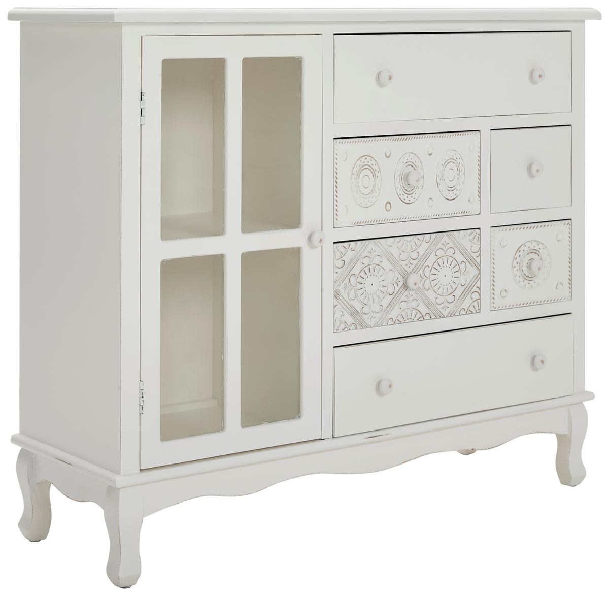 KOMODA CELINbiałydrewno, szkło, materiał drewnopochodnySzerokość/Wysokość/Głębokość: 106/90/36,5 cm799,00 zł